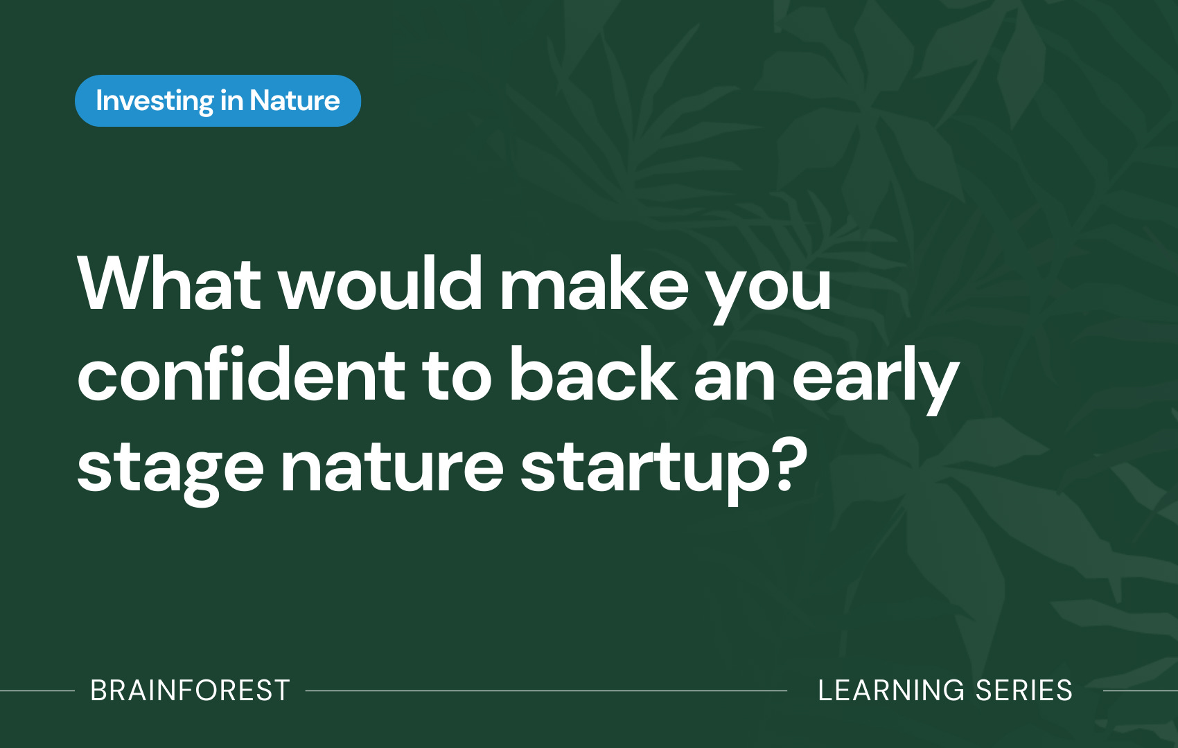 Welcome to Capital for Nature, a 10-week learning series by Brainforest that makes nature investing practical and understandable. Every week, we will unpack one topic, from where the money can flow, to how deals actually work, to what it takes to create both impact and financial returns. Short, clear, and grounded in what we see every day with founders, investors, and philanthropists.